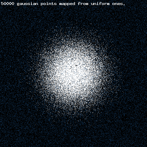 uses the B-M transform to map two uniformly distributed vars into two guassian vars.