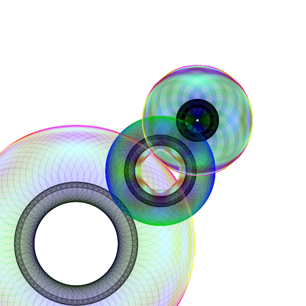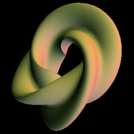 One of my earliest forays into iOS programming, and a continuation of my obsession with toroids. A magical, twisting, morphing, spinning donut! All shading computed in CPU with vertex colors; no textures or shaders. |